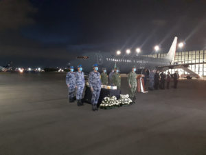 En el hangar de la Secretaría de la Defensa Nacional (Sedena) se llevó a cabo una ceremonia y representantes de las diferentes entidades montaron guardias de honor en memoria de los paisanos que fallecieron a causa de la pandemia.