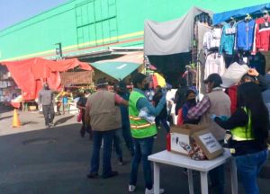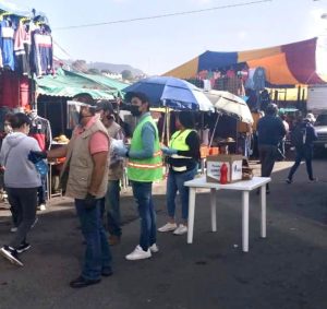 Tlaxcala, Tlax., 18 de julio de 2020.- El ayuntamiento capitalino, en coordinación con el gobierno del estado, mantiene las medidas sanitarias de prevención para evitar contagios en el tianguis sabatino.