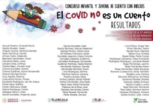 “El Covid no es un cuento”, fue un concurso de participación, en donde todas y todos los infantes que enviaron su propuesta recibirán un premio acorde a su edad. Es importante que acudan acompañados por un adulto (padre, madre o tutor), quienes a su vez deberán mostrar su identificación oficial, en los horarios y fechas asignadas para la entrega, a fin de evitar aglomeraciones”, precisó.