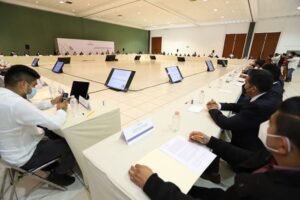 Tlaxcala, Tlax., 8 de septiembre de 2021.- La gobernadora, Lorena Cuéllar Cisneros, se reunió este martes con los alcaldes de los 60 municipios del estado para coordinar los trabajos y las estrategias en materia de salud, a fin de unificar criterios entre los tres órdenes de gobierno ante la contingencia sanitaria por Covid-19.