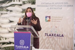 Tlaxcala, Tlax., 14 de enero de 2022.- La gobernadora Lorena Cuéllar Cisneros entregó apoyos del Programa Fertilizantes para el Bienestar de la Secretaría de Agricultura y Desarrollo Rural (Sader), a productores y productoras del municipio de Ixtacuixtla.
