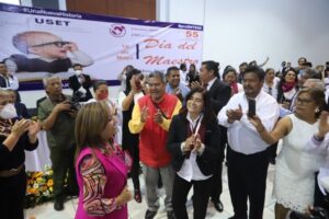 En su oportunidad, el secretario general de la sección 55 del SNTE, Jorge Guevara Lozada, reiteró el agradecimiento a los más de 4 mil 500 maestros y maestras que integran la organización. “Reconocemos, agradecemos y reafirmamos la capacidad, la fortaleza y la unidad que tenemos, pero sobre todo el compromiso de cada uno de ustedes que refuerzan y cumplen con la Secretaría de Educación Pública y el gobierno del estado, a fin de fortalecer el sistema educativo y con confianza puedo asegurar que también es prioridad para nuestra estimada maestra y gobernadora Lorena Cuéllar Cisneros”.