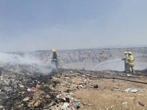 Tlaxcala, Tlax., 18 de mayo de 2022.- La Secretaría de Medio Ambiente (SMA) activó el protocolo de atención al incendio que se registró en el relleno sanitario de Nanacamilpa, establecido para lograr el control del mismo, pero que seguirá vivo por factores propios del lugar, ya que existe presencia de gases, materiales diversos y vientos.