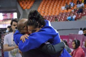 Tlaxcala, Tlax., 2 de julio de 2022.- En un ambiente de fiesta deportiva, la judoca Bárbara Natalia Padilla Rugerio se colgó la medalla de oro en la categoría U18+70 kilogramos, al vencer en una revancha deportiva a Isis Benítez, de Baja California; tras inmovilizarla por 20 segundo, consiguió el Ippon que le dio el triunfo.