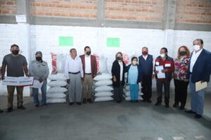 Tlaxcala, Tlax., 13 de julio de 2022.- Días atrás, la gobernadora Lorena Cuéllar Cisneros, en conjunto con el representante de la Secretaría de Agricultura y Desarrollo Rural (Sader) del gobierno de México en Tlaxcala, Misael del Razo Hernández, inició la entrega de 12 mil toneladas de apoyos del Programa Fertilizantes para el Bienestar, con el objetivo de impulsar el desarrollo del campo y a sus productores.