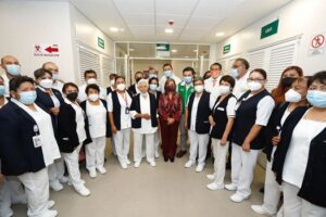 Informó que el Insabi aportó 180 millones de pesos para concluir este hospital, con el que a la fecha llevan 156 nosocomios concluidos de 327 que se encuentran en proceso en el país, “es un orgullo para el gobierno federal que este hospital sea puesto en funcionamiento (…) estamos buscando que haya personal especializado en este hospital y lo habrá, tendrán todos los médicos, medicamentos, mejor infraestructura y justicia laboral”.