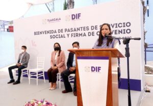 Tlaxcala, Tlax., 27 de julio de 2022.- El Sistema Estatal para el Desarrollo Integral de la Familia (SEDIF) realizó la entrega de Cartas de Presentación para Servicio Social a pasantes de medicina, enfermería, odontología, nutrición y fisioterapia, así como la firma de convenios con las universidades Popular del Estado de Tlaxcala (UPET), Tolteca de México, del Valle de Puebla (UVP) y Mexicana de Puebla, con el propósito de fomentar y fortalecer la formación profesional.