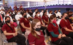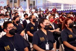 Acompañada de la directora general del SEDIF, Flor López Hinojosa, así como de directivos y representantes de las universidades y personal del DIF estatal, explicó que un total de 132 pasantes de servicio social iniciarán el periodo del 01 de agosto 2022 al 31 de julio de 2023 para reforzar el sistema de salud del DIF estatal y los municipales.