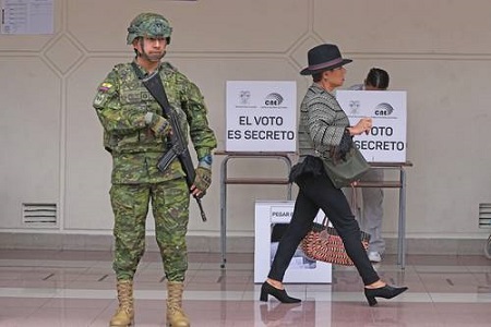 ▲ La participación en el referendo ecuatoriano fue de 80 por ciento. En la imagen, una casilla en Quito. Foto Ap